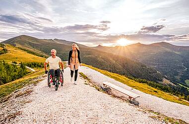 Hiking in Bad Kleinkirchheim begins where thermal spas meet the mountain peaks. Amidst fragrant Swiss stone pines, sunny alpine slopes and crisp mountain air, a variety of trails await – from leisurely panoramic walks to family-friendly summit hikes. Those who wish can take the cable cars up to over 2,000 metres or enjoy the warm thermal waters after their hike.